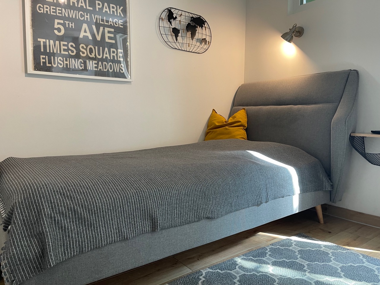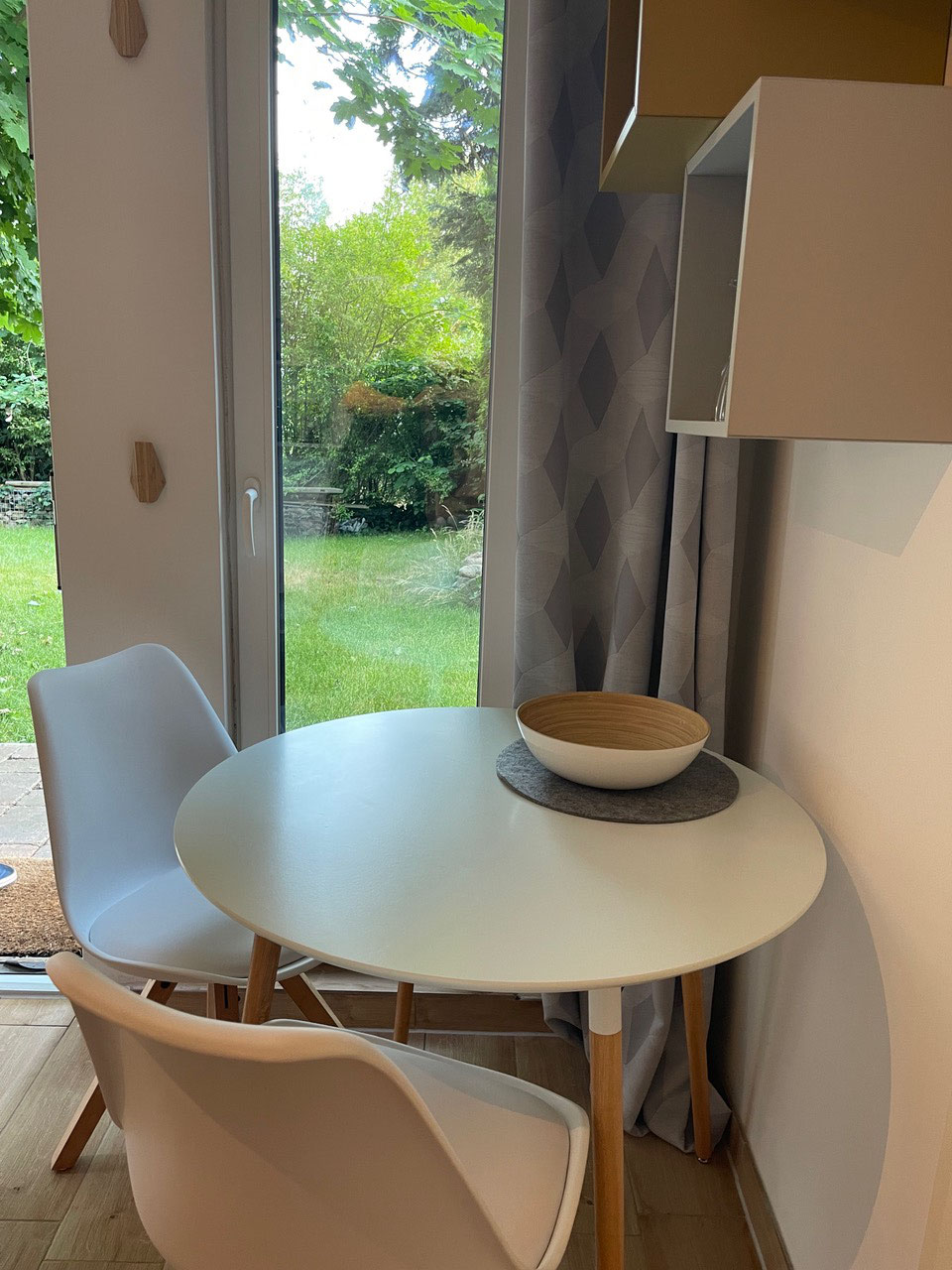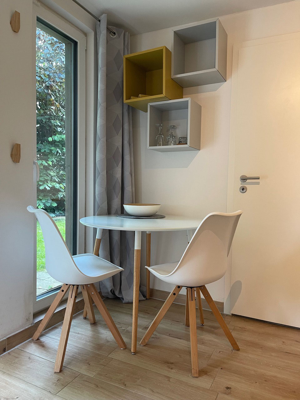 Dieses 22 Quadratmeter große, moderne Tiny House befindet sich ruhig gelegen im hinteren Grundstücksbereich unseres Hofquartiers. Es ist ein wahres Schmuckstück mit privater Terrasse. Hier finden Sie alles auf kleinem und durchdachten Raum. Eben ein Tiny House. Das Tiny House bietet Platz für einen Erwachsenen (Einzelbett 100x200). Wer gerne kuschelt, kann es auf Anfrage auch für zwei Gäste buchen. Gern können Sie sich kostenfrei in das W-Lan Netz einloggen. Bitte erfragen Sie bei Ankunft einfach die LogIn Daten.